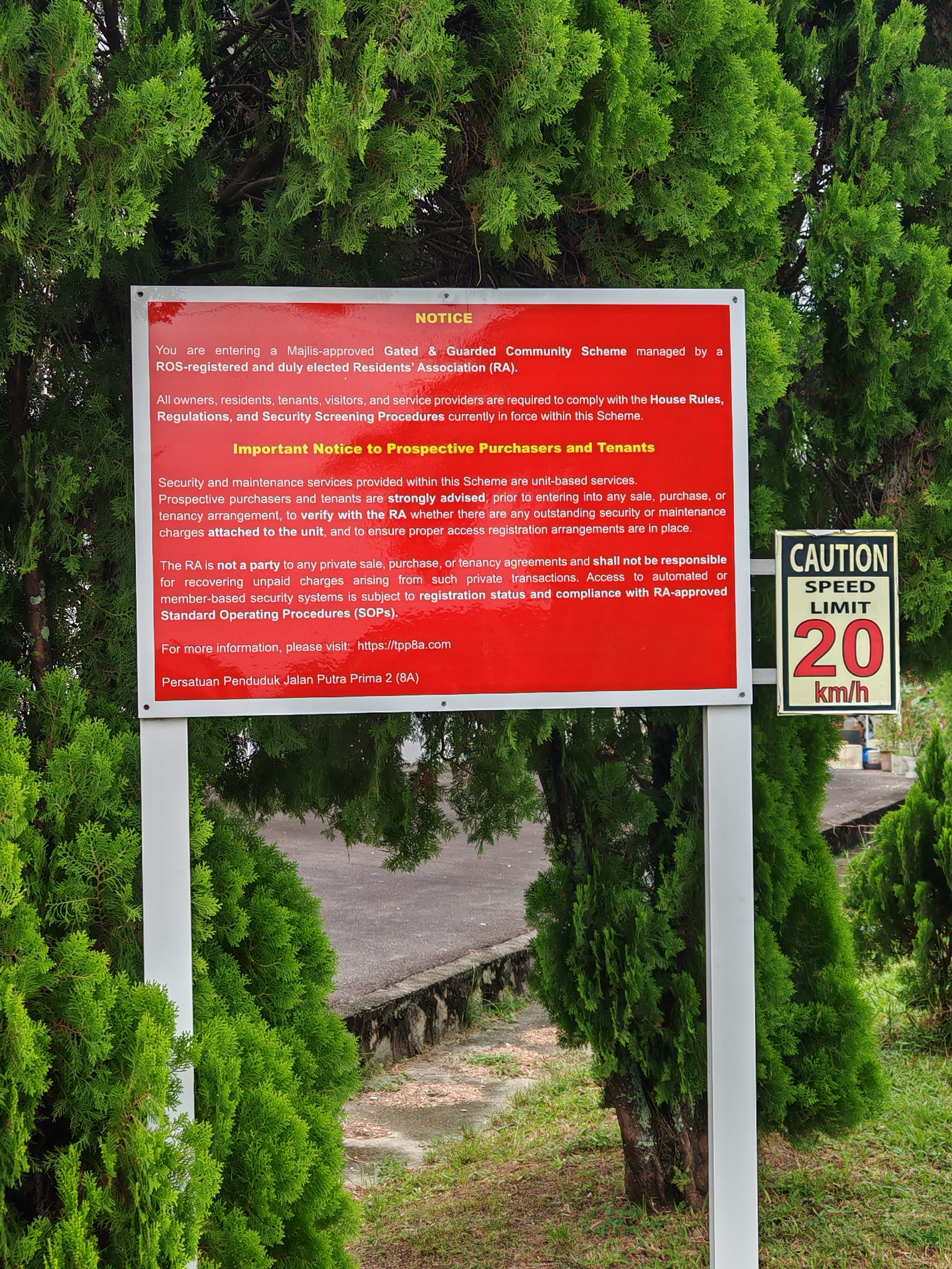 The RA appreciates the patience, understanding, and continued support of residents as we enhance the security, order, and quality of living in our most cherished Taman Putra Prima 8A Gated & Guarded Community Scheme, in full compliance with all applicable laws and regulations.