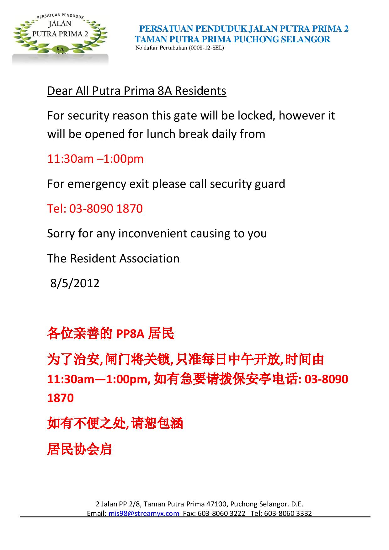 Lately, many people are moving into our newly established Gated and Guarded Community Taman Putra Prima 8A managed by Persatuan Penduduk JPP2.