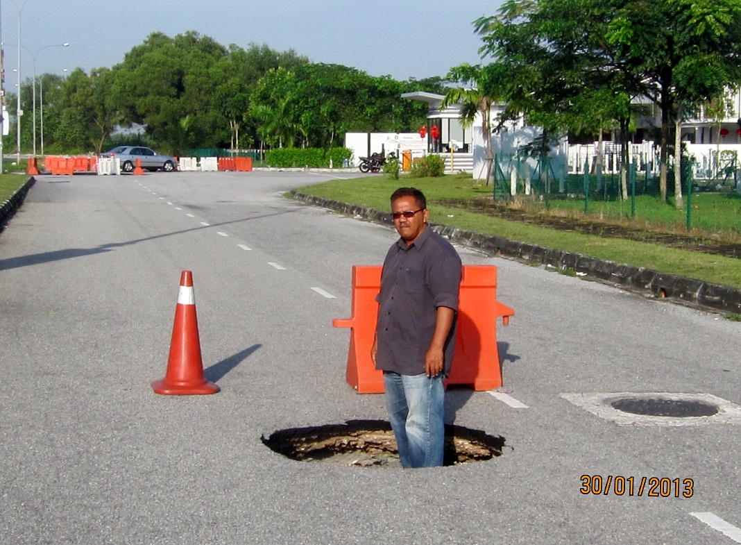 Image ImageAnother road depression discovered next to manhole not far from PP8A main entrance. Our Guard Marzuki fell from his motor at that spot