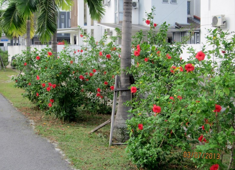Hundreds of drizzling hibiscus blooming along the main entrance of 8A