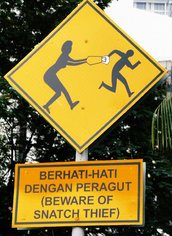 All pedestrian especially lady with shoulder carry purse or handbag please beware of any motorcycle by pass you. This is the most likely scenario for the quick run away snatch theft.