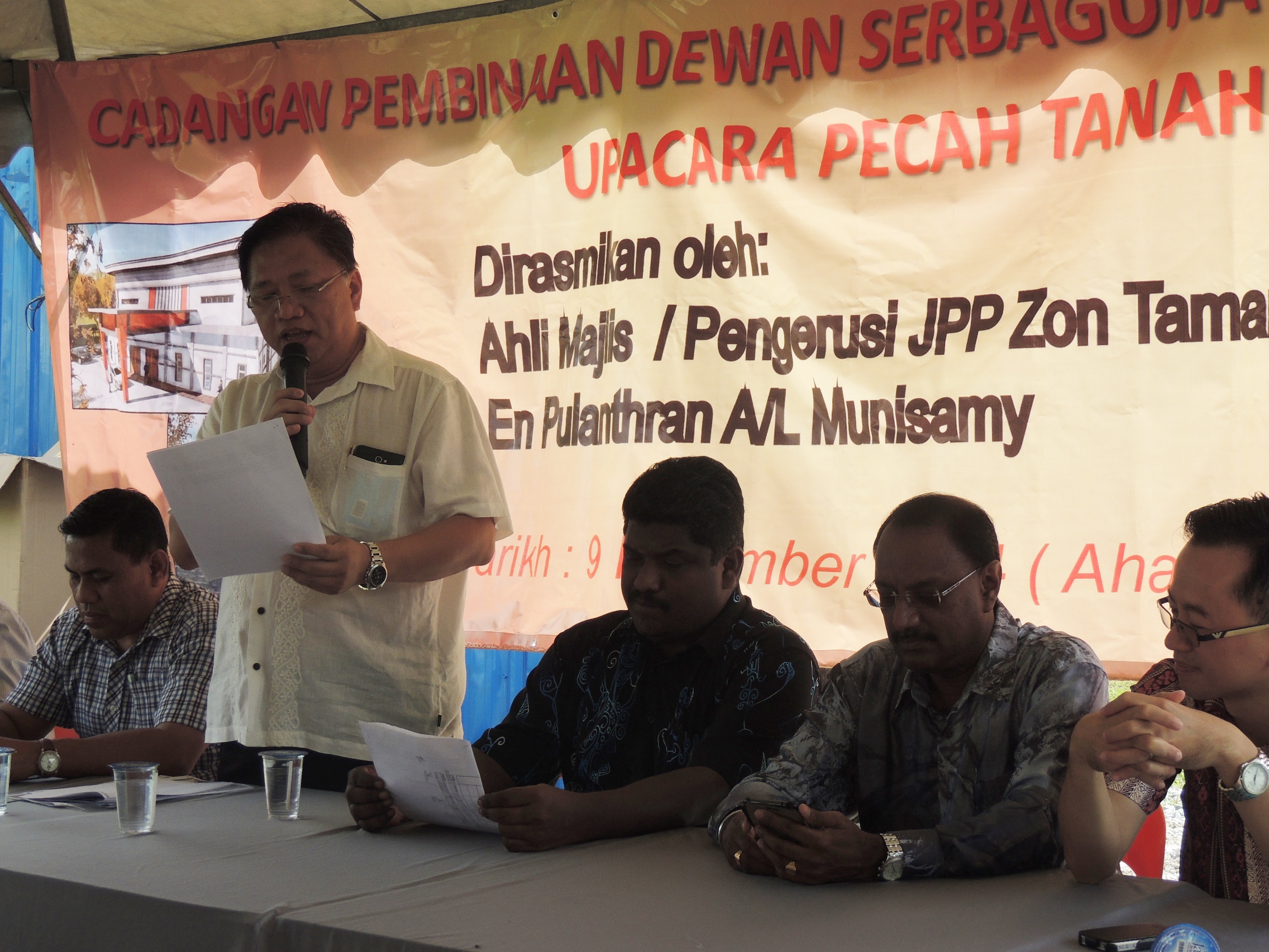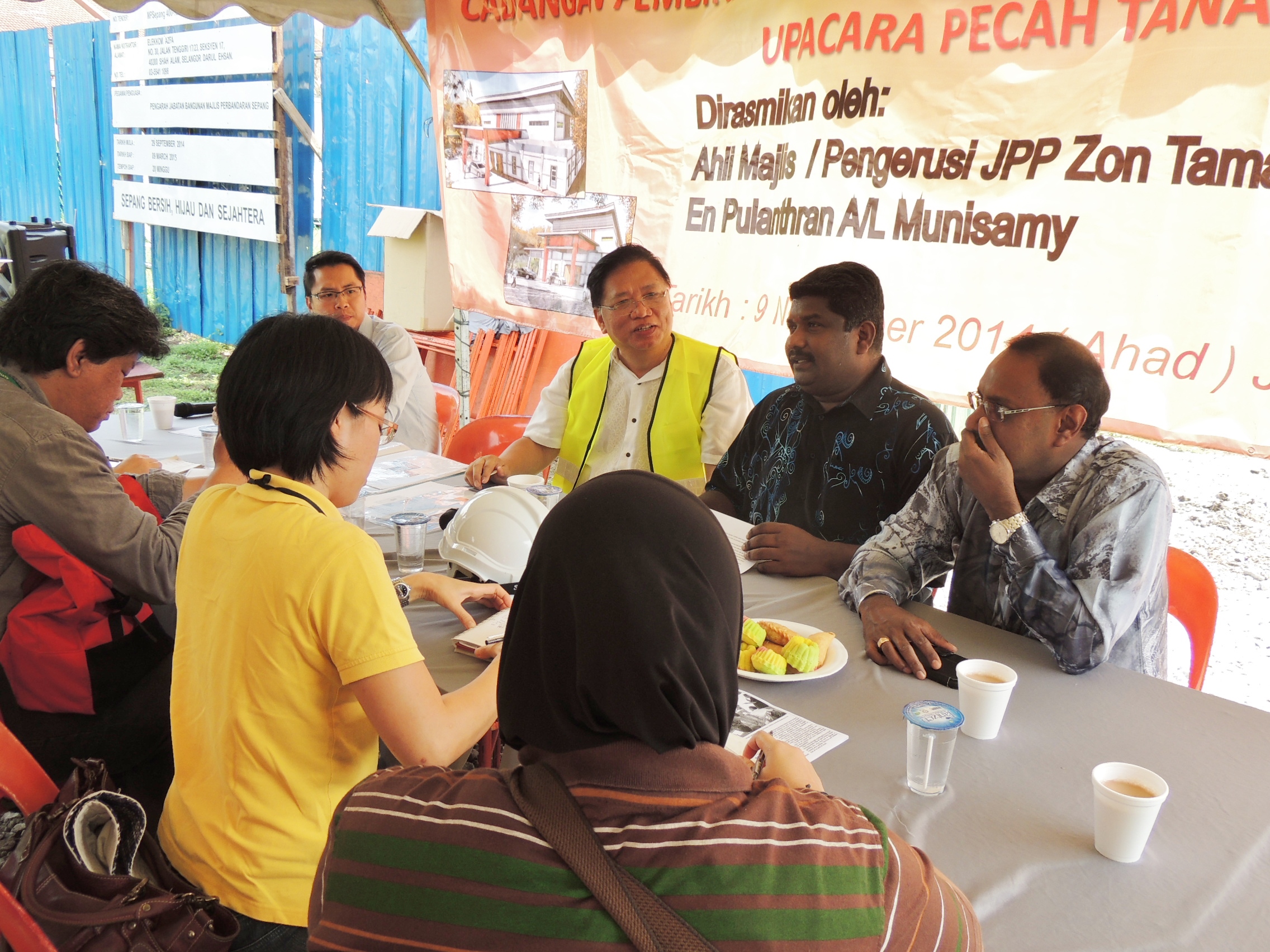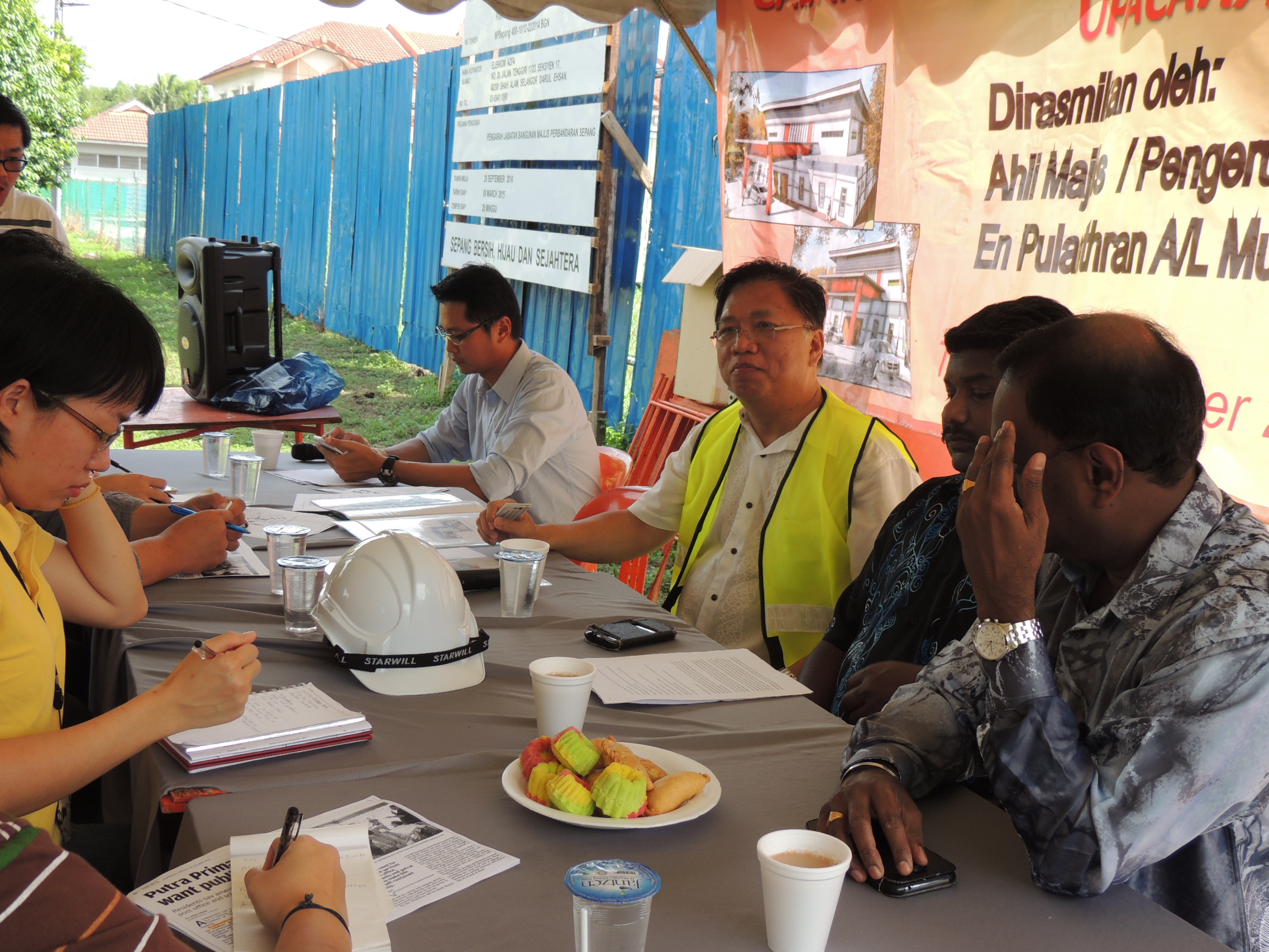 In order to express  the residents heartiest gratitude to the councillor for his dedication and assistance, the Gabungan had  invited Councillor Mr Pulanthran and his colleague Councillor Mr Santokh Singh  to officiate the ground breaking ceremony, other VIPs also invited to witness the event including The GM from the developer Plenitude Permai Sdn Bhd Mr Choy Chang Yee,  Ketua Balai Polis Tmn Putra Prima S/Isp Aziz Ali, , officers from MPSepang, RA  chairmen, committee members and representatives from various phases of Taman Putra Prima and the neighbouring Taman Mas,  Taman Sri Aman, Taman Meranti Jaya and Taman Lake Vista.