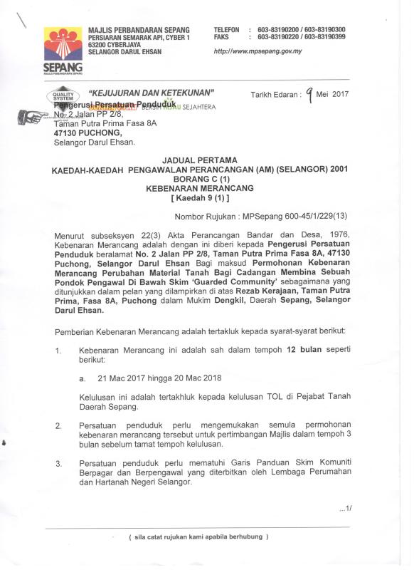 TPP8A Gated and Guarded Community Scheme has been granted for another 3 years again by MPSepang