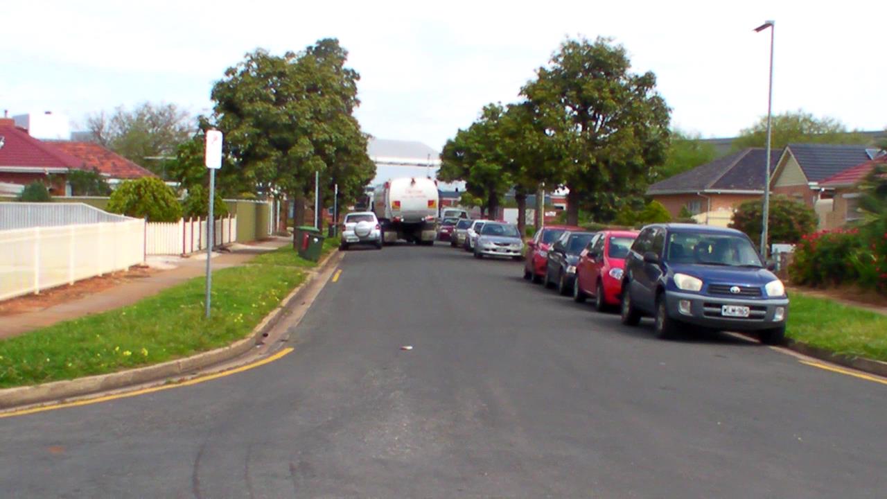 Garbage Truck hardly squeezes through