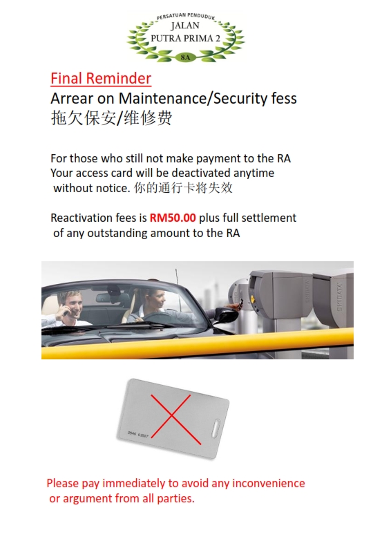 Note: No receipt will be issued, proof of transaction by bank statement, but please clearly write your name and unit address behind your cheque.
